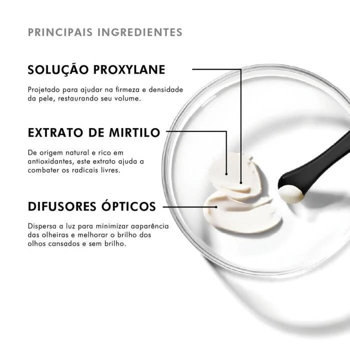O A.G.E. Eye Complex aumenta o efeito luminoso da pele, minimiza olheiras e aumenta a capilaridade ao redor dos olhos. A combinação exclusiva de ativos auxilia na interrupção do processo de glicação avançada e restaura a água e os nutrientes da pele. Assim, aumenta a elasticidade e densidade cutânea, melhorando a aparência de rugas e pés de galinha.